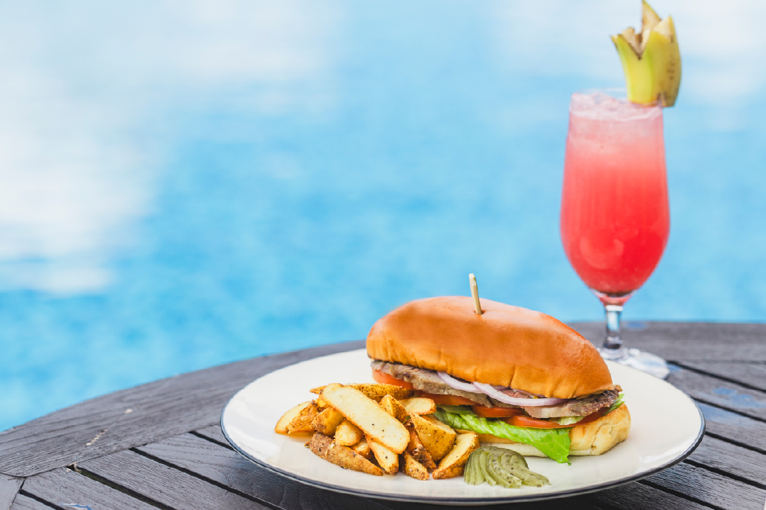 搭配全新推出的綜合拼盤、海鮮義大利麵與沁涼飲品,為您的池畔時光增添更多美味選擇。
